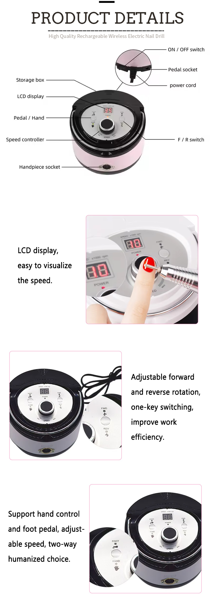 Акумулаторна бормашина за нокти Бормашина за нокти на пръсти на пръсти 35w 35000rpm