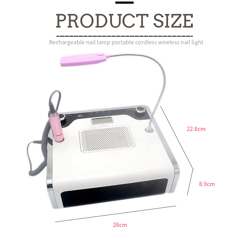 Размерите на тази многофункционална лампа за нокти 4 в 1 са 280 мм дължина, 228 мм ширина и 89 мм височина, с голям капацитет и възможност за използване както с ръце, така и с крака, което е много удобно.