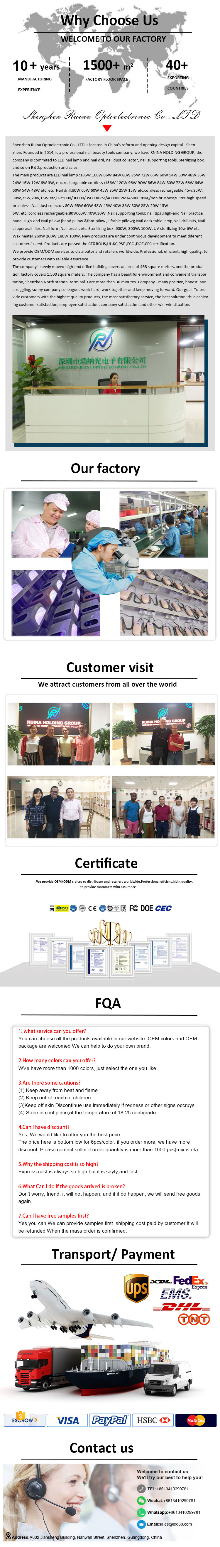 Нов стил извита подстригване на ноктите на главатаShenzhen Ruina Optoelectronics Co., Ltd., като водещ производител, доставчик и износител в Китай на регулируема LED лампа за нокти с дисплей, последователно поддържа философията за преследване на перфектно качество. Този ангажимент спечели на нашите UV лепилни лампи за нокти за домашна употреба доверието на много клиенти. Изключителен дизайн, първокласни суровини, изключителна производителност и силно конкурентни цени - това са точно това, което всеки клиент очаква и което ние доставяме. Разбира се, цялостното следпродажбено обслужване е също толкова необходимо.