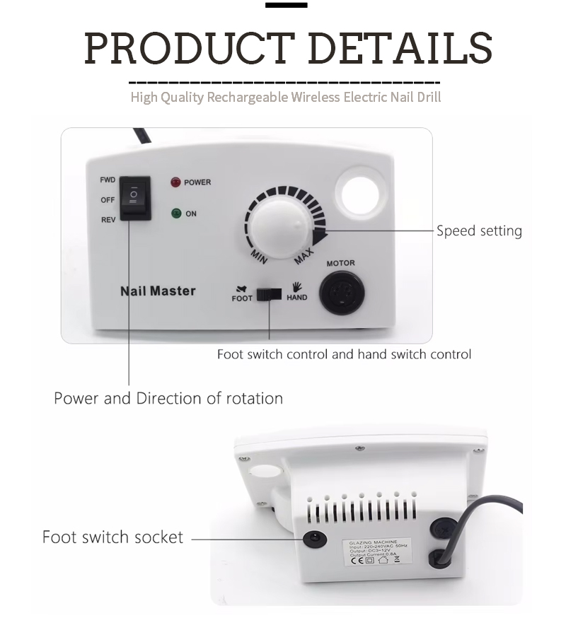 Характеристики на продукта и приложения на 602 високоскоростен 30 000 оборота в минута електрически файл за нокти за премахване на лак за нокти