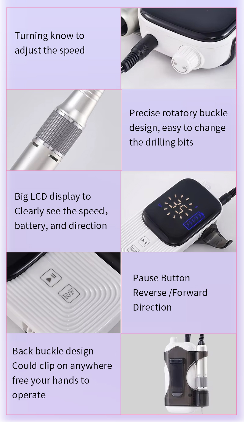 Преносим комплект електрически бормашини за нокти с мощен мотор 65w 35000rpm