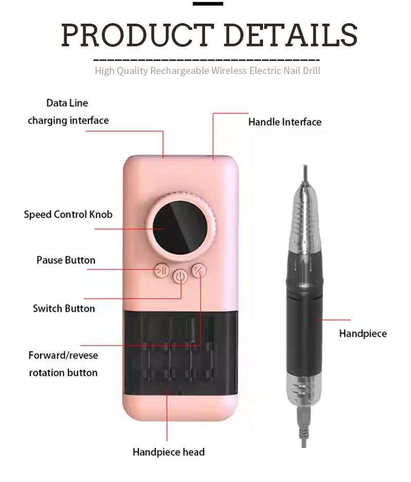Преносим комплект електрически бормашини за нокти с мощен мотор 65w 35000rpm
