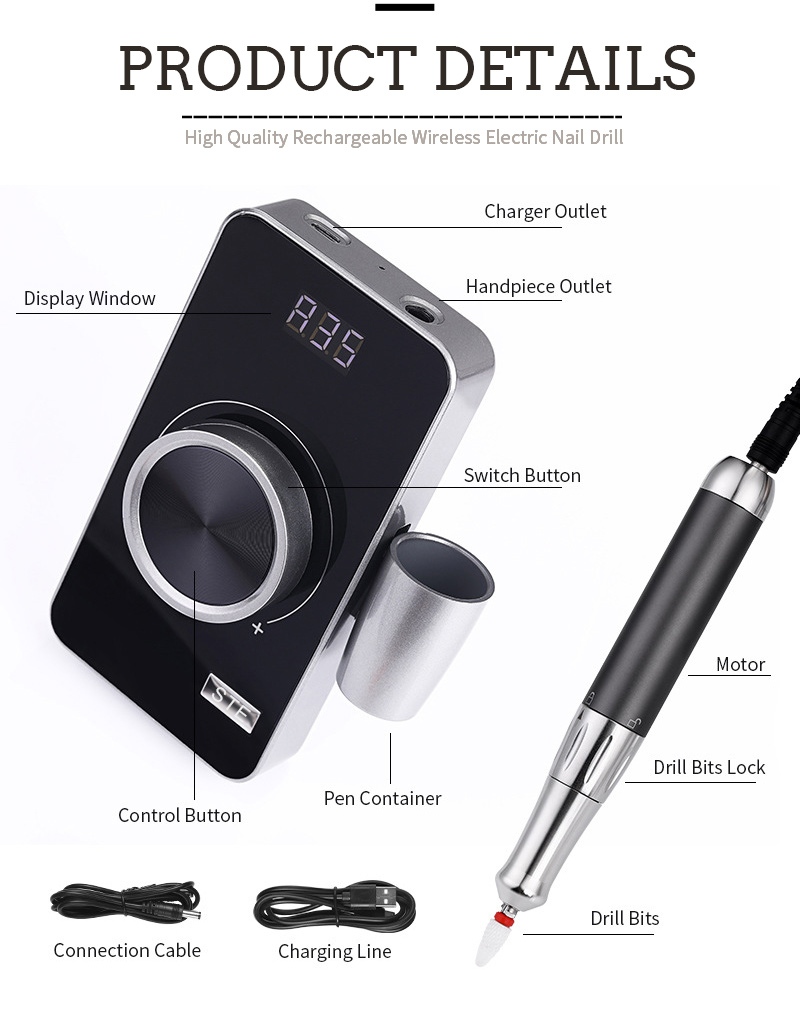 | Подробности за ексфолираща електрическа бормашина за нокти с 35 000 RPM |