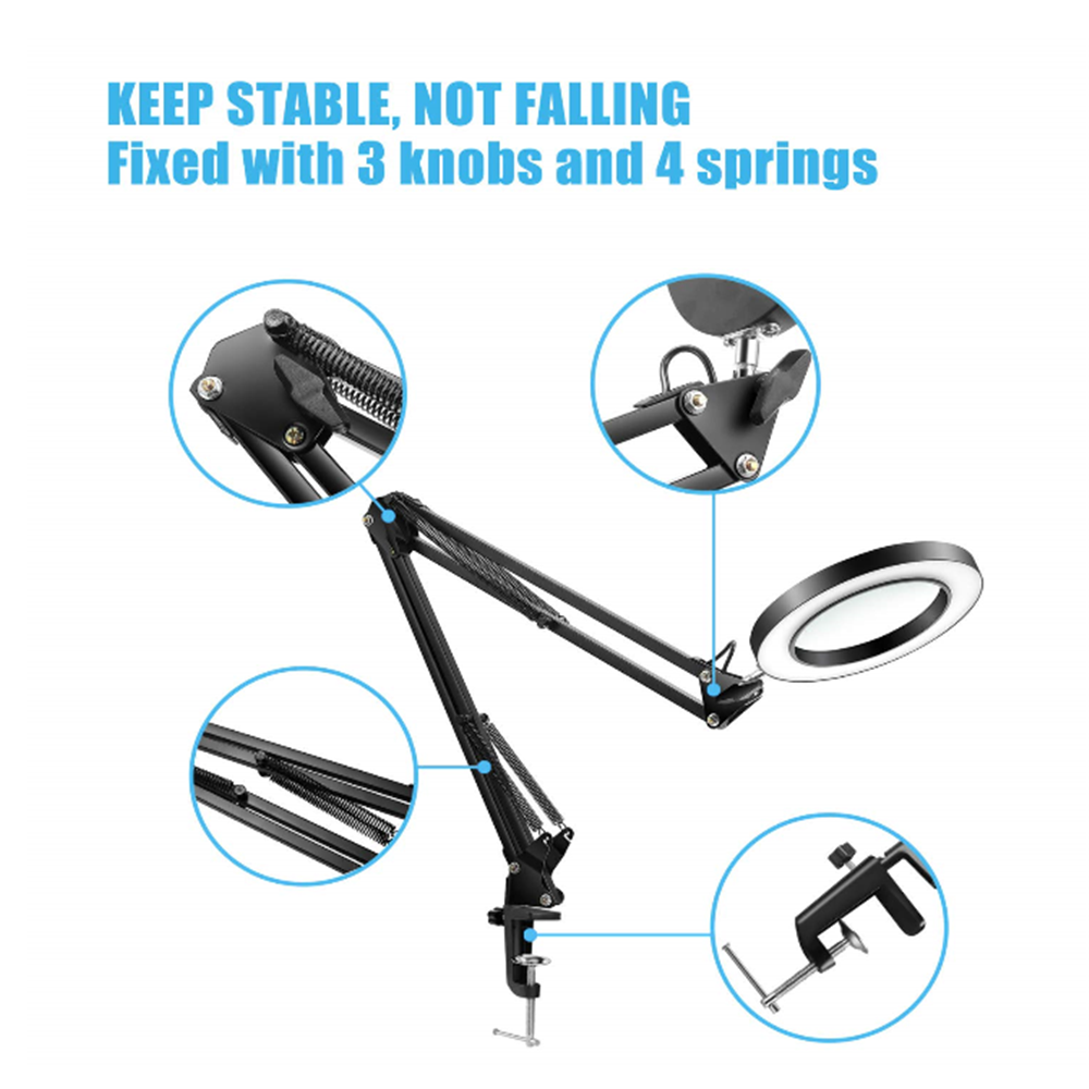 Тази сгъваема, въртяща се на 360 градуса увеличителна настолна лампа се отличава с елегантен и изискан дизайн. Нежната му светлина е лесна за очите, симулира меката, естествена светлина на зората за удобно осветление без отблясъци. Подходящ за множество приложения, включително татуиране, бродиране и ноктопластика.