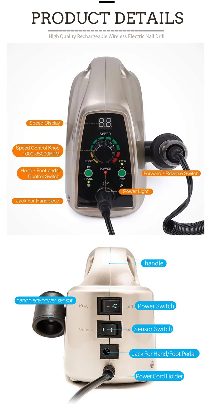 Характеристики на продукта и приложения на високоскоростния 35 000 оборота в минута на DM-014A за премахване на лак за нокти за премахване на лак за нокти