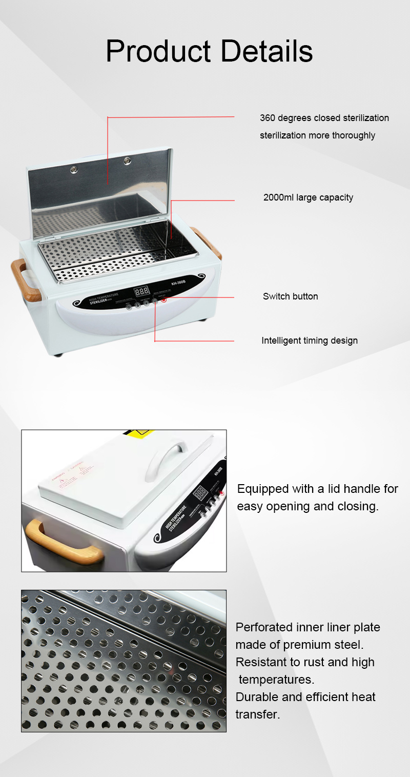 Този стерилизатор основно генерира топлина чрез нагревателен пръстен, като използва високи температури за дезинфекция.