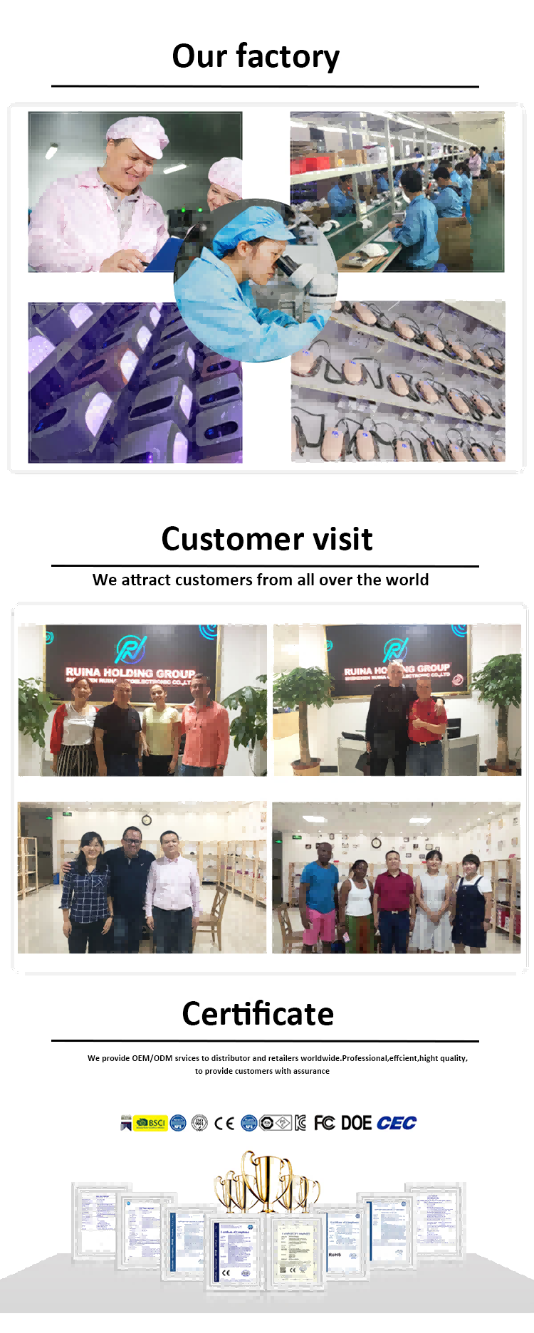 Ние предоставяме OEM/ODM услуги за глобални дистрибутори и търговци на дребно. Професионални, ефективни и с изключително качество, ние предлагаме надеждна гаранция на нашите клиенти.