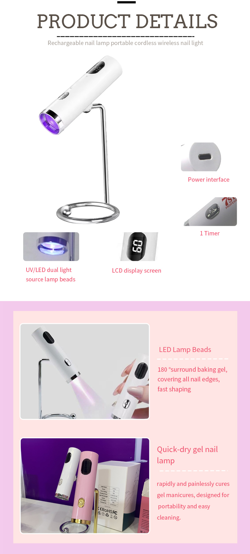 Продуктът гарантира дори сушене на лепило без свиване. Двойните му източници на светлина осигуряват нежно отопление, за да се предотврати обезцветяване на ръцете и напрежение на очите, подходящи за ръцете и краката, което осигурява забележително бързи резултати от изсушаване.
