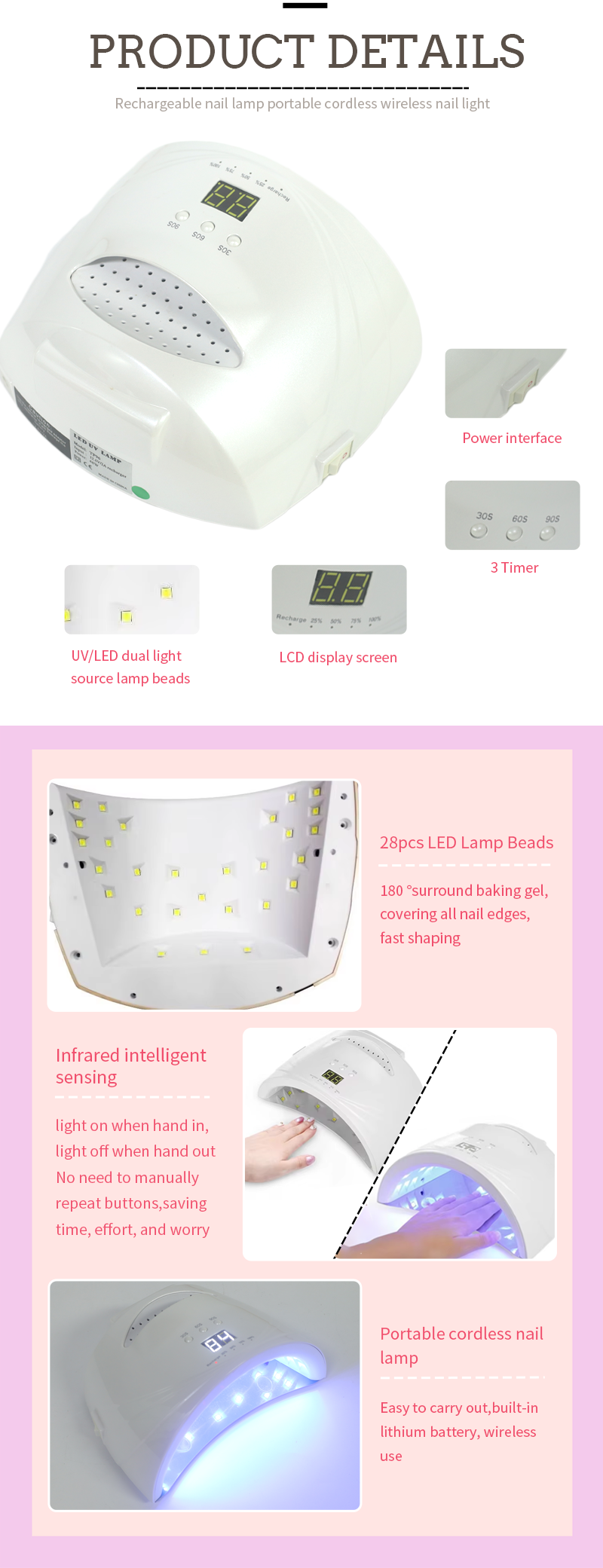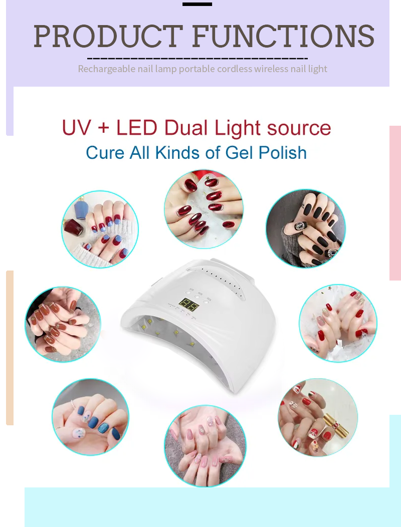 Продуктът гарантира дори сушене на лепило без свиване. Двойните му източници на светлина осигуряват нежно отопление, за да се предотврати обезцветяване на ръцете и напрежение на очите, подходящи за ръцете и краката, което осигурява забележително бързи резултати от изсушаване.