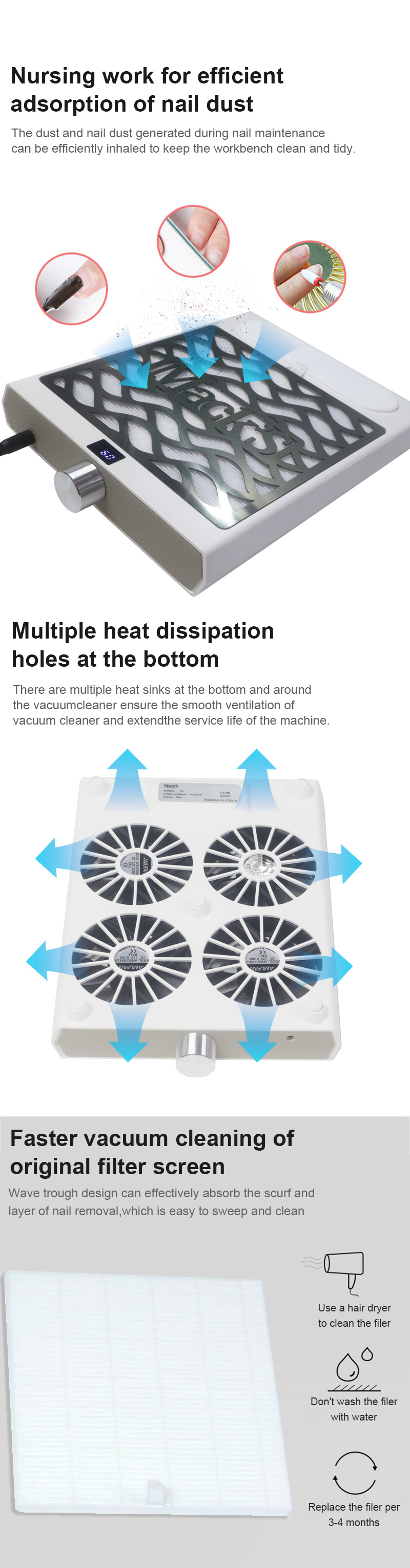 Продукти силна адсорбция на остатъци от нокти не пропуска прах, поддържайте плота чист и подреден, бързото вакуумиране не пропуска прах висока мощност по-ефективно.