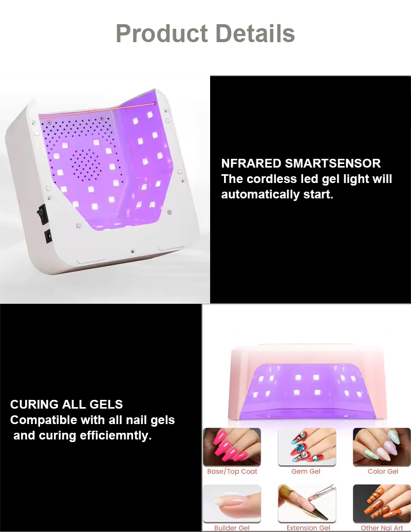 Нов стил извита подстригване на ноктите на главатаКато професионален производител имаме удоволствието да предложим персонализирана нова лампа за бързо съхнене на гел лак за нокти. Ние предоставяме първокласно следпродажбено обслужване и гарантираме навременна доставка. Този продукт разполага с интелигентна технология за червена светлина, която е нежна към ръцете, 5-секундно бързо изсъхване, голям сензорен дисплей и поддържа функции на таймера. С интуитивни бутони за управление и изчерпателно ръководство за работа, дори напълно начинаещи могат да го използват без усилие.