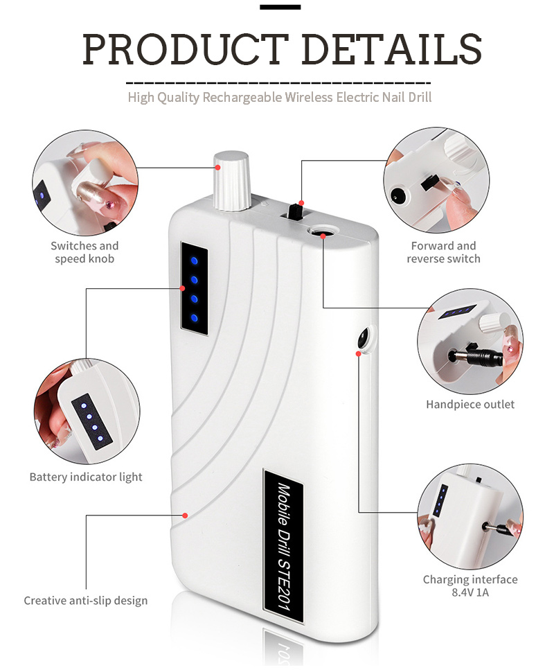 Акумулаторна акумулаторна бормашина за нокти Professional 45w 40000rpm