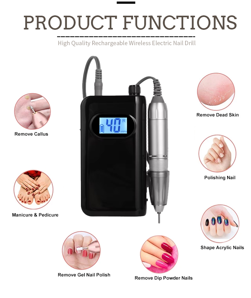 Характеристики на продукта и приложения на високоскоростния 40 000 об / мин електрически файл за нокти за премахване на лак за нокти за премахване на лак за нокти