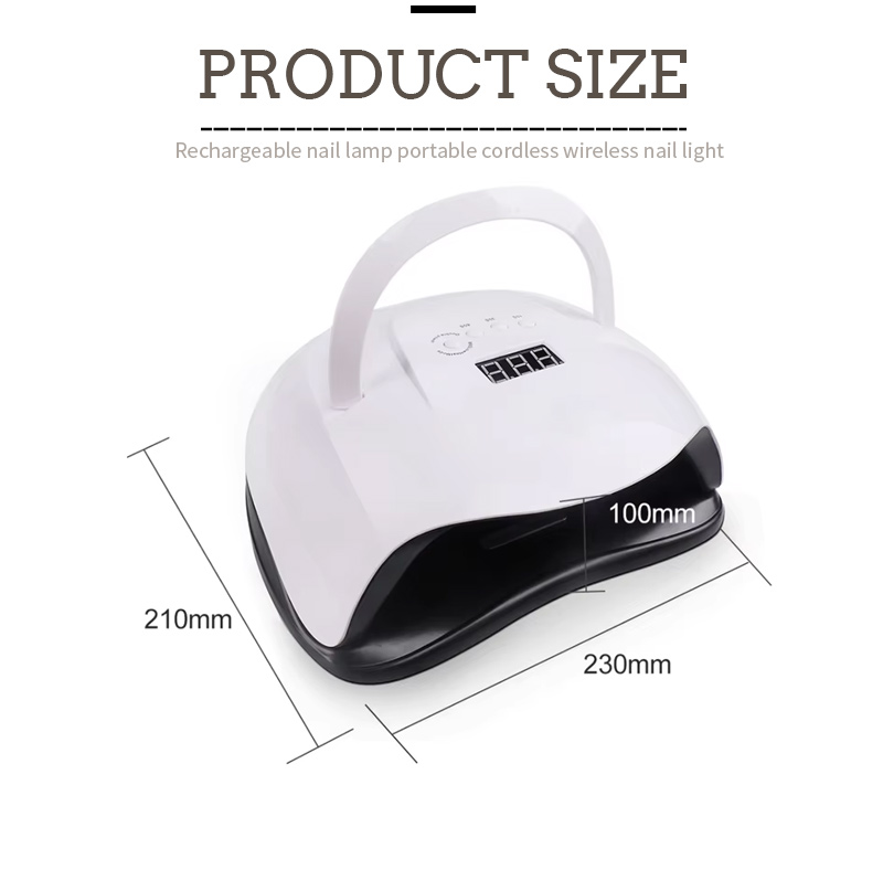 Размерите на преносимата лампа за сушене на нокти са 180 мм дължина, 190 мм ширина и 85 мм височина, с голям капацитет и възможност за използване както на ръцете, така и на краката, което е много удобно.