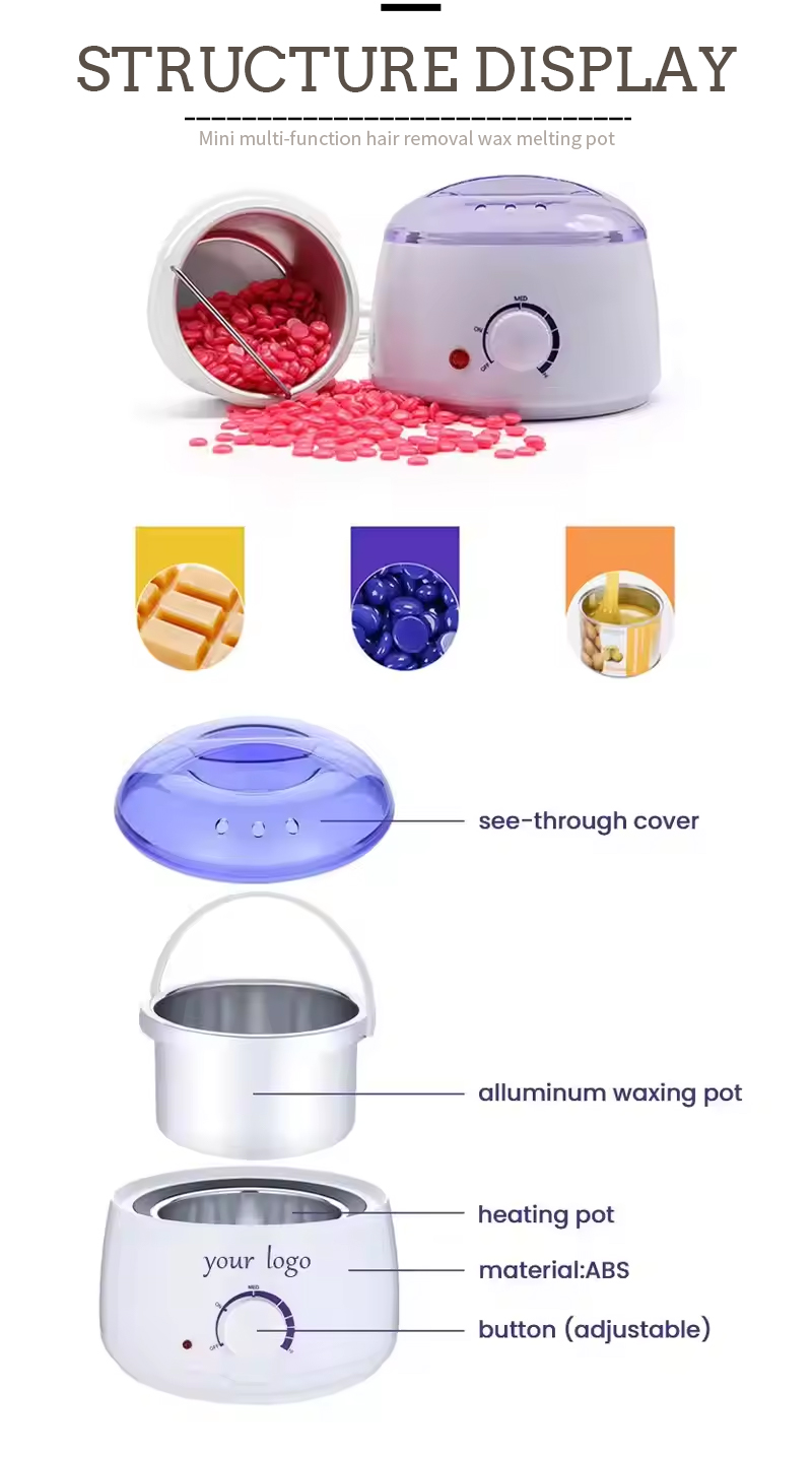 Голям капацитет за топене на широка гама восъчни зърна. ABS пластмасова обвивка, устойчива на висока температура, обвивката е по-лъскава.