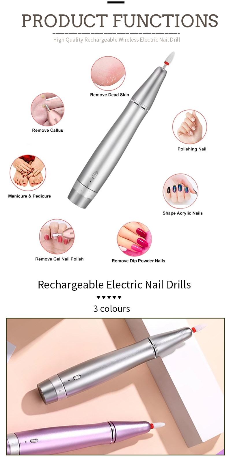 Комплект бормашини за нокти Професионална електрическа пила 65w 35000rpm
