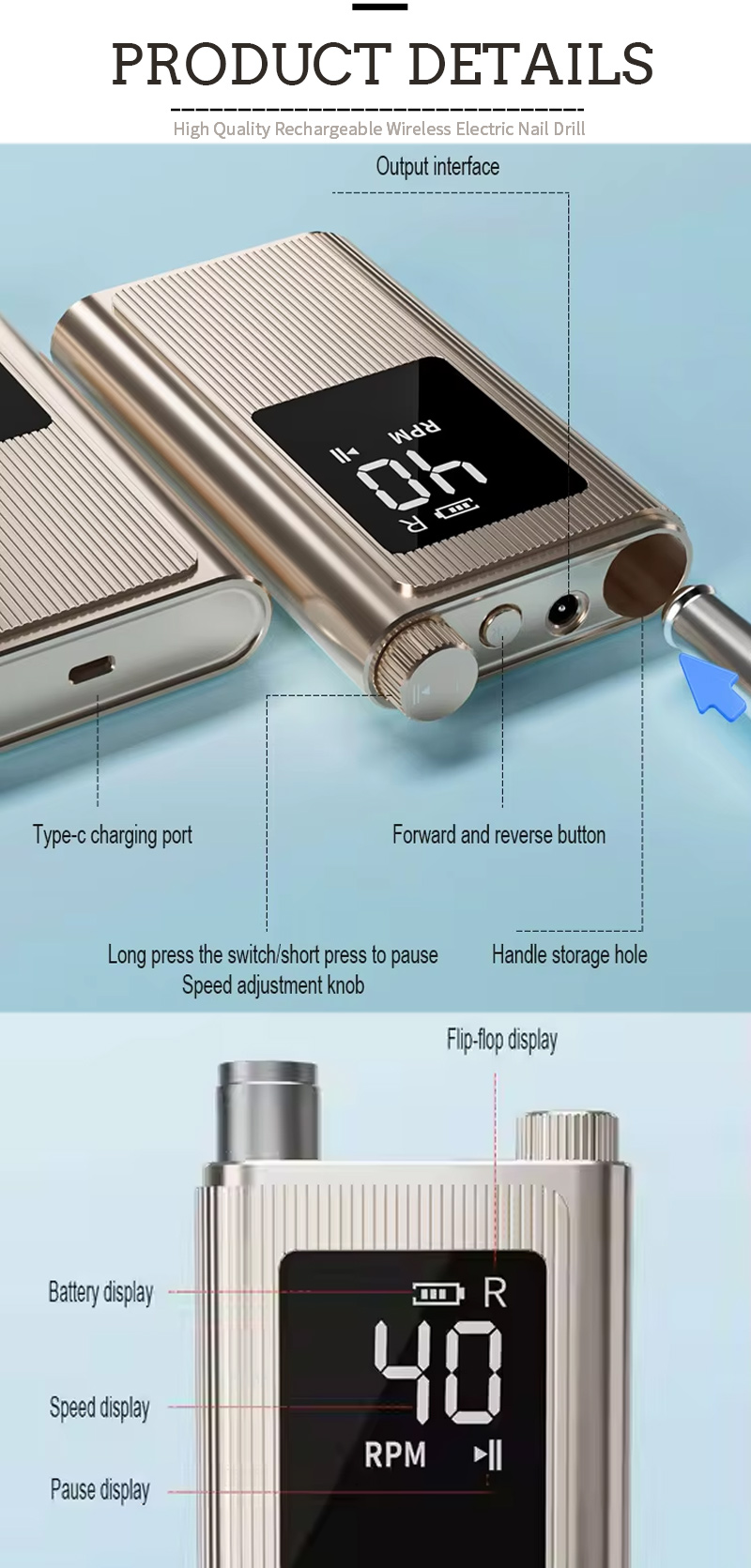 Нов стил извита подстригване на ноктите на главатаShenzhen Ruina Optoelectronic Co., Ltd. Водещ китайски 6Rechargable Electric File File Manuction, доставчик и износител. Придържайки се към преследването на перфектното качество на продуктите, така че нашият 606 високоскоростен 40000 оборота в минута електрическият файл за нокти за нокти е удовлетворен от много клиенти. Екстремният дизайн, качествените суровини, високата производителност и конкурентната цена са това, което всеки клиент иска, а също и това, което можем да ви предложим. Разбира се, също е от съществено значение е нашата перфектна услуга след продажбата.