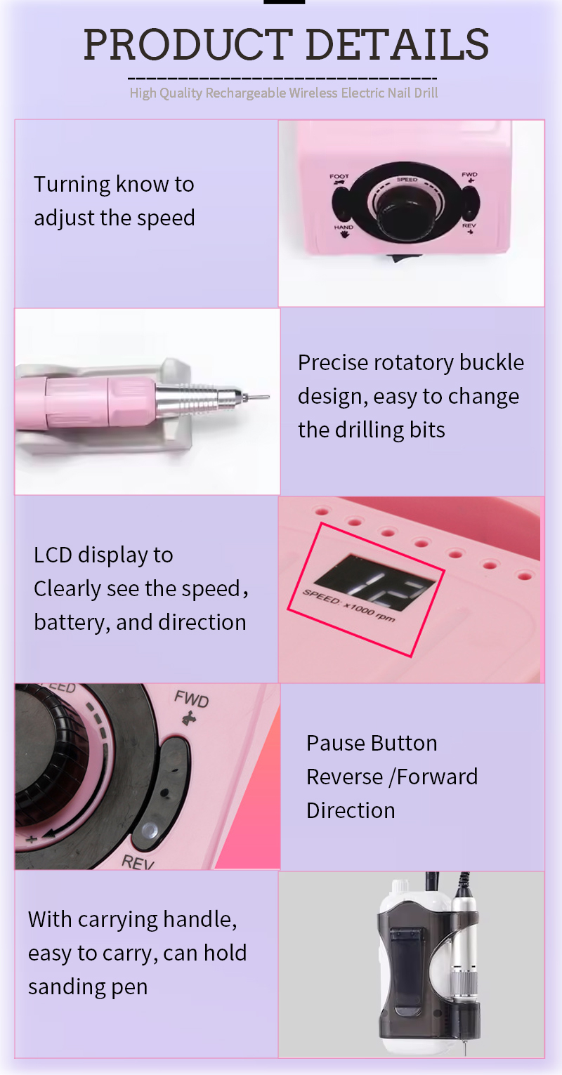 Като професионален производител с удоволствие предлагаме персонализирани ZS-716 високоскоростни 35 000 оборота в минута електрически файлове за нокти за премахване на лак за нокти. Ние предоставяме първокласна услуга след продажбата и навременна доставка. Този модел е част от серията инструменти за грижа за ноктите 202, подходящи за създаване на акрилни нокти, буфериране на повърхности на ноктите и подстригване на ръбовете на продуктите за лична хигиена. Проектиран с прецизност, той разполага с елегантен дизайн, удобно захващане и висококачествен двигател, който работи тихо.
